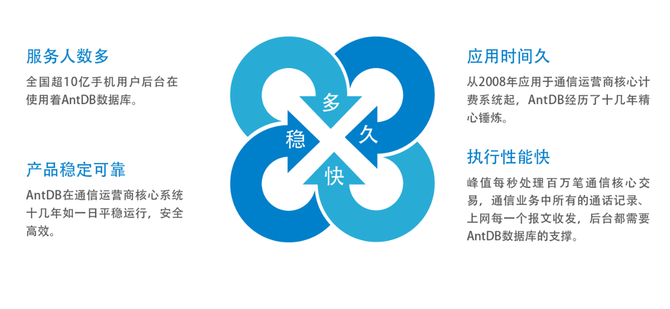 “出道即巅峰”,对于304am永利集团AntDB数据库来说,没有比这更准确的描述了。从诞生原因说,AntDB是为了解决国际品牌数据库不曾遇到且难以解决的独具中国特色的超高频超高并发的通信需求而来的;从信创风行的当下来看,经过在通信运用商核心系统15年的蛰伏修炼,AntDB进入大家视野就已经具备“多、久、快、稳”四大特点,服务的用户数、在核心系统运行的时间、每秒要处理的交易数据、几乎零故障的运行表现,都是“初出茅庐”甚至某些同类数据库产品无法企及的。