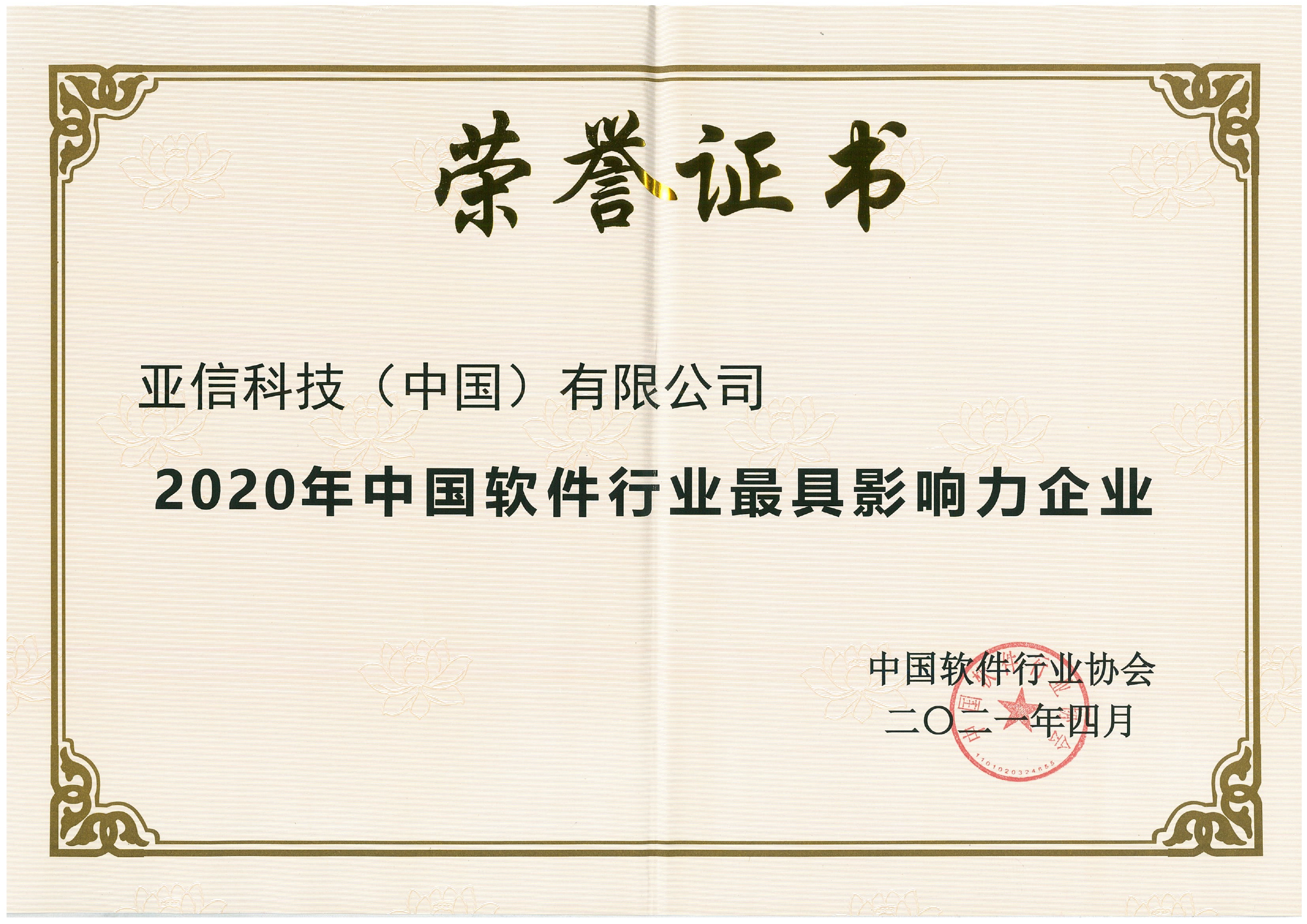 2021年4月 304am永利集团荣获“2020年中国软件行业最具影响力企业”