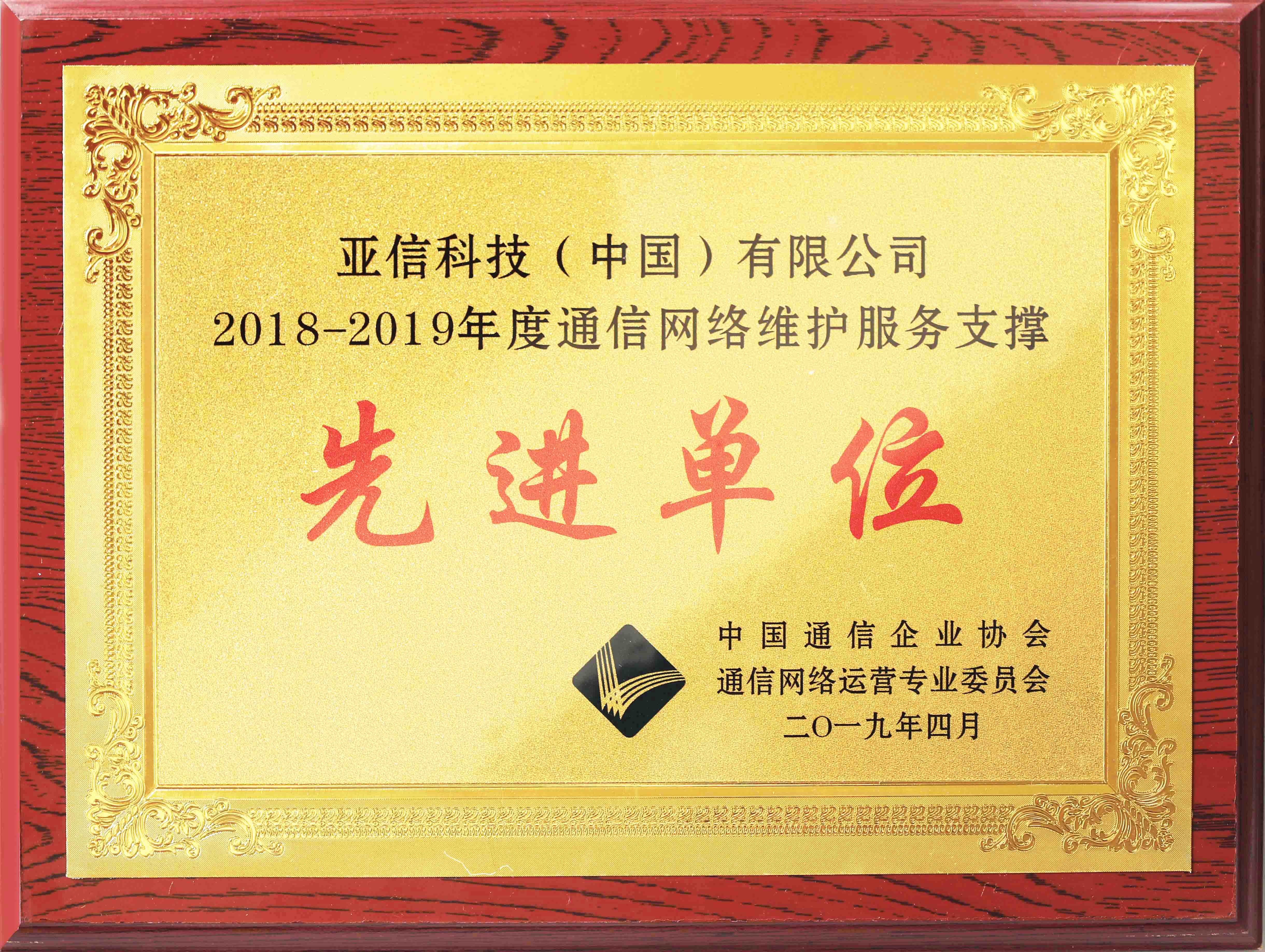 2019年5月 304am永利集团荣获“2018-2019年度通信网络维护服务支撑先进单位”