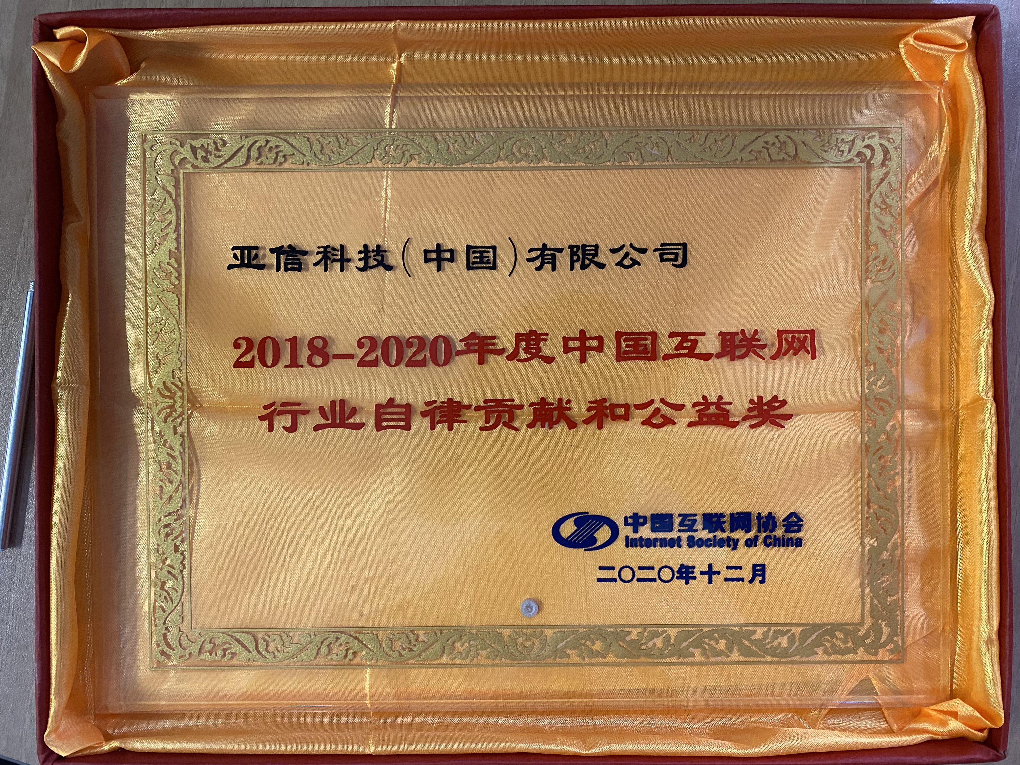 2020年12月 304am永利集团荣获“2018-2020年度中国互联网行业自律贡献和公益奖”