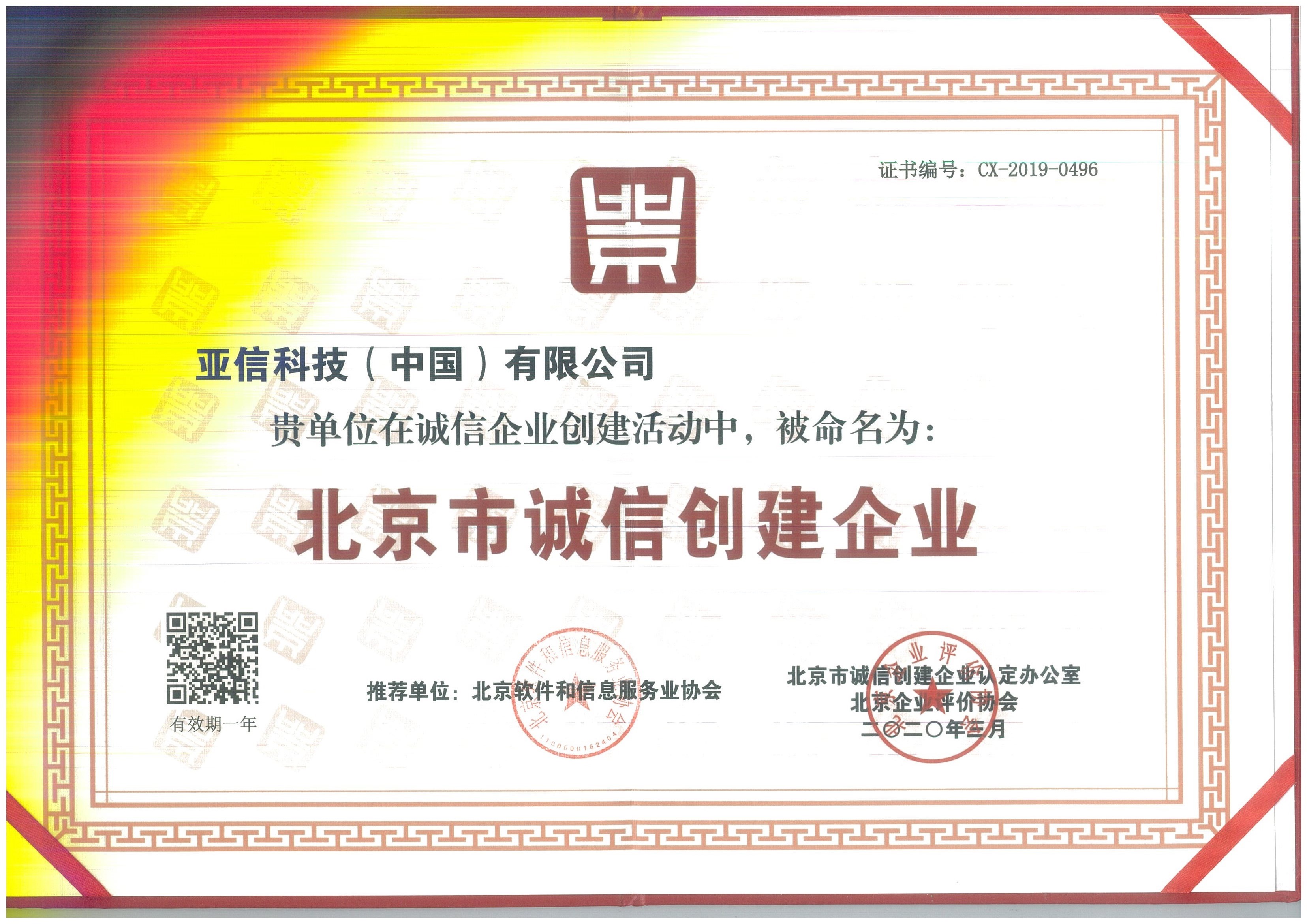 2020年3月 304am永利集团荣获“北京市诚信创建企业”