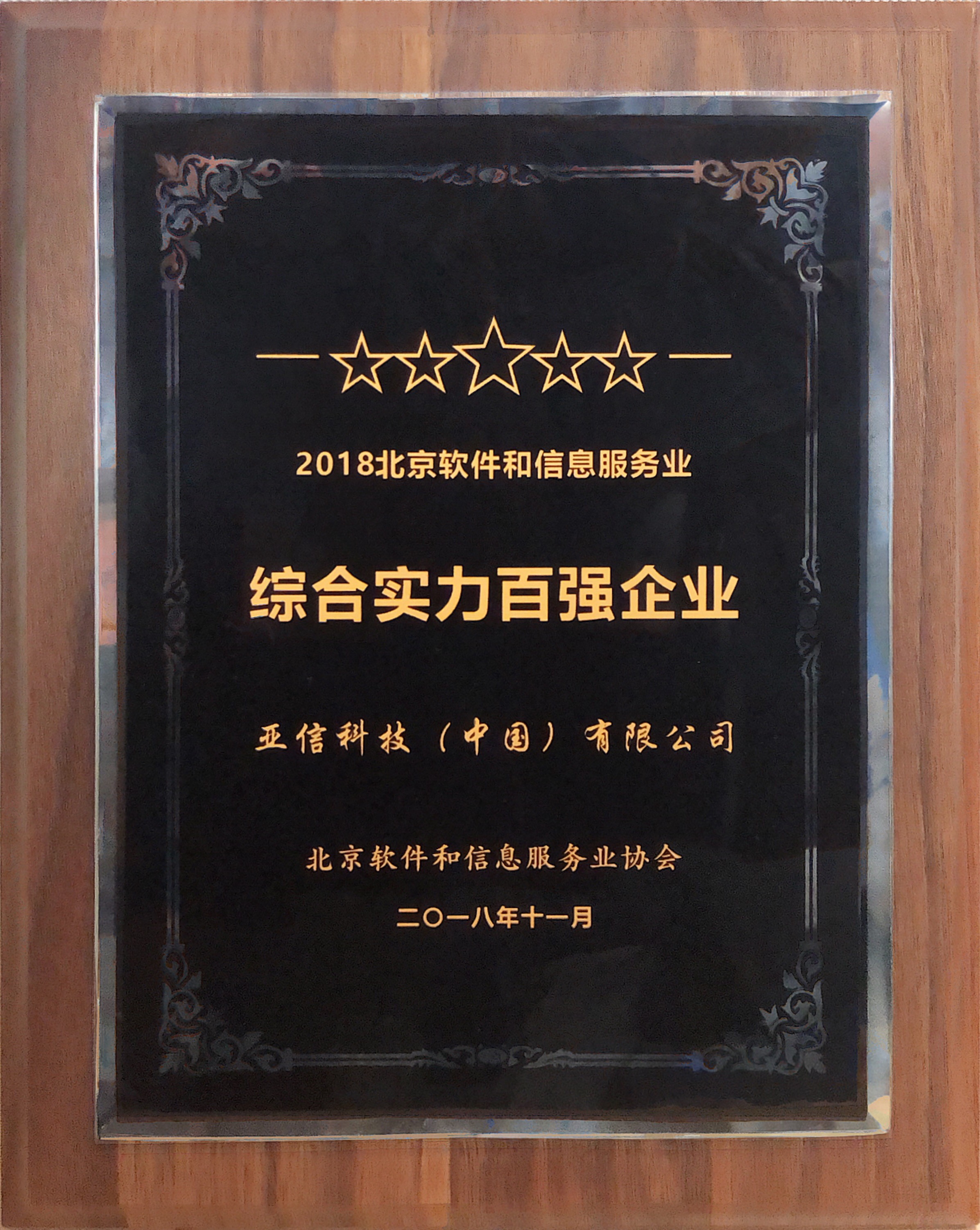 2019年1月 304am永利集团荣获“2018北京软件和信息服务业综合实力百强企业”