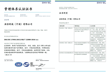 2017年12月亚信软件荣获《2017年度信息系统集成及服务大型一级企业》证书